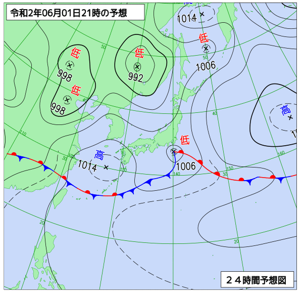 掲載している天気図は気象庁「天気図(実況・予想)」「高層天気図」「数値予報天気図」を元にぴよぴよ天気予報で加工しています。